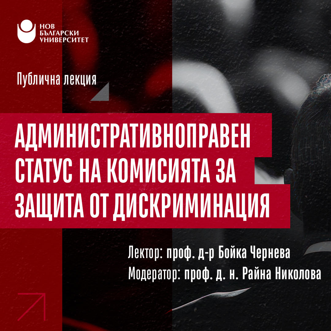Темата на публичната лекция е посветена на правното положение на Комисията за защита от дискриминация като административен орган – състав, конституиране, правомощия, издавани актове.