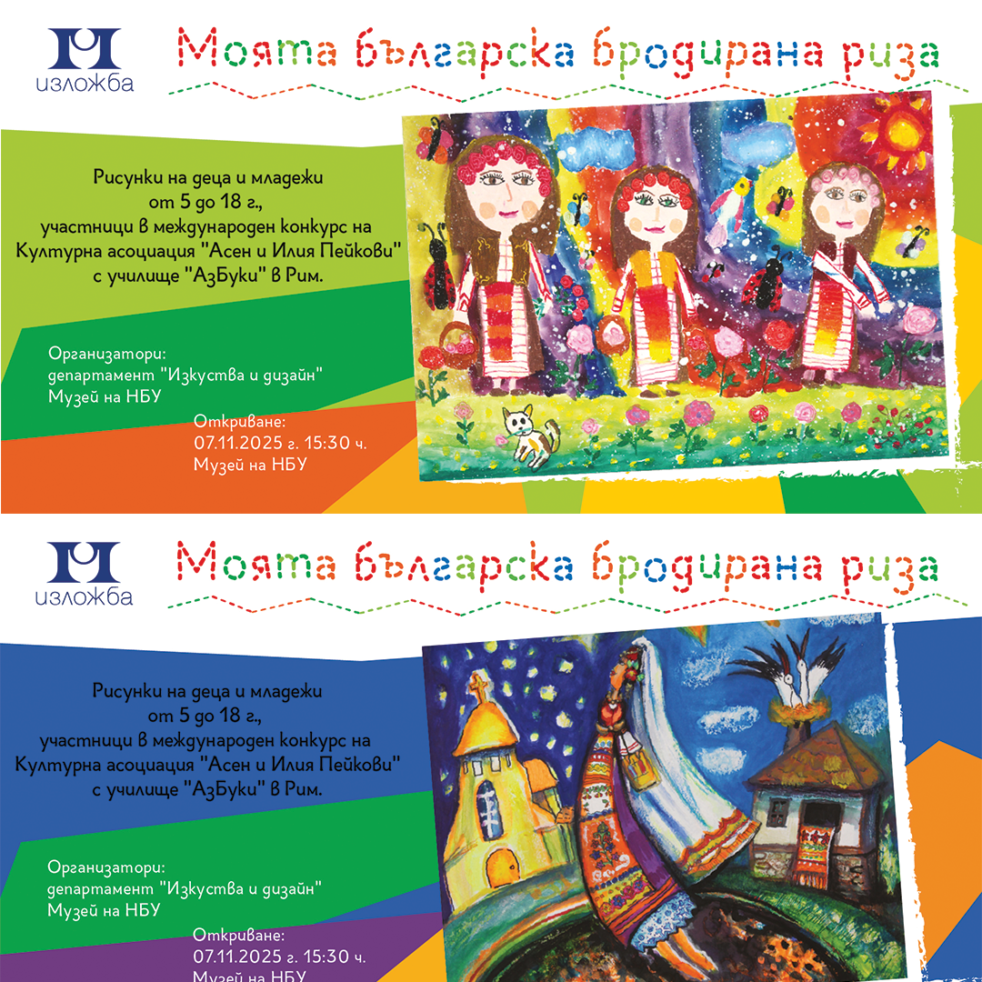 Изложбата „Моята българска бродирана риза“ представя рисунки на деца и младежи от 5 до 18 години – участници в деветото издание на едноименния международен конкурс.