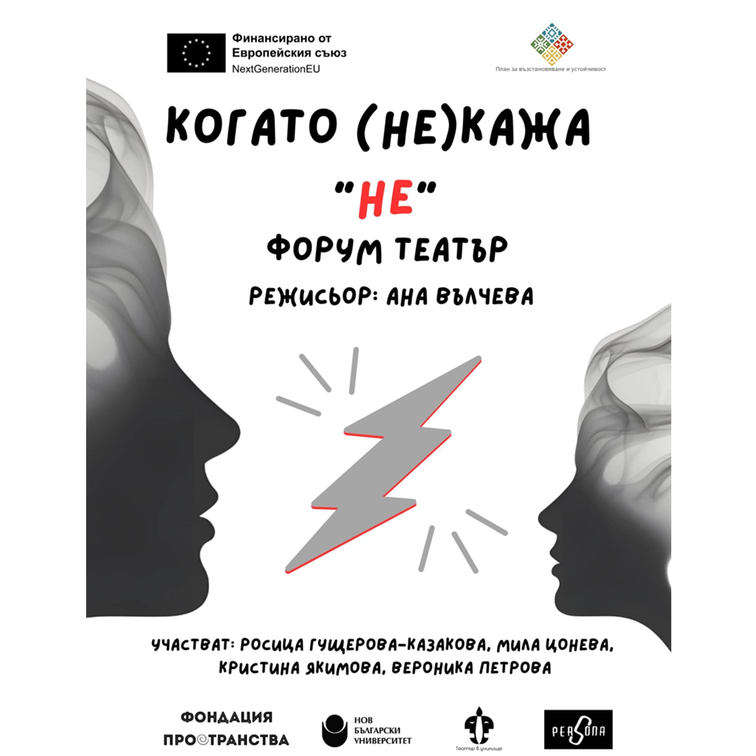 „Когато (НЕ) КАЖА ‘"НЕ’“ е форум театър спектакъл за избора, границите и смелостта да отстояваш себе си. Публиката не просто гледа – тя влиза в действието, спира сцените, задава въпроси и търси нови решения заедно с героите.