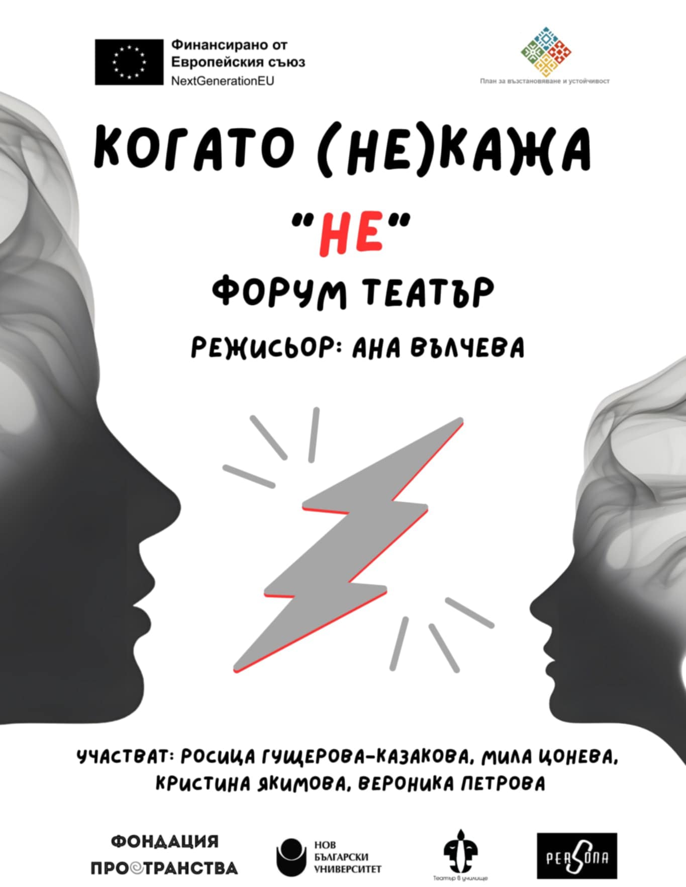 „Когато (НЕ) КАЖА ‘"НЕ” - форум театър спектакъл за избора, границите и смелостта да отстояваш себе си; реж. Ана Вълчева