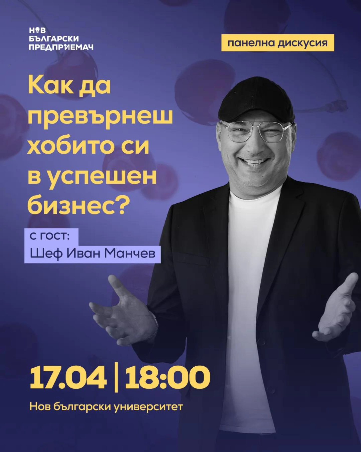 Събитието „Как да превърнем хобито си в успешен бизнес“ се отличава с реалната история зад успеха. Специален гост е Иван Мачев – не само утвърден готвач, но и предприемач, създател на кулинарни предавания и собствена марка за кафе.