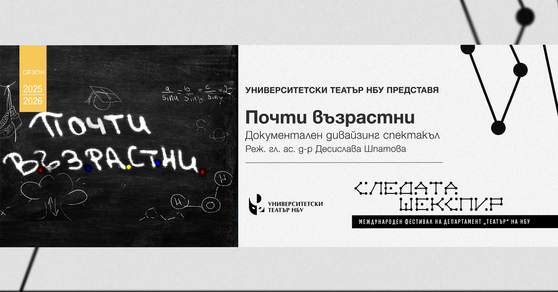 Спектакълът е част от МЕЖДУНАРОДЕН ФЕСТИВАЛ НА НБУ СЛЕДАТА "ШЕКСПИР"