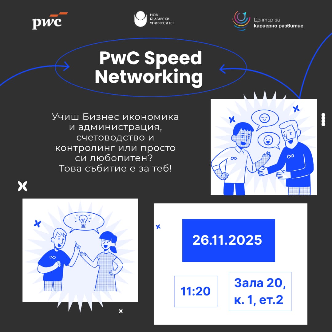 Заповядайте на нашето първо Speed Networking събитие, организирано от PwC Bulgaria в Нов български университет!