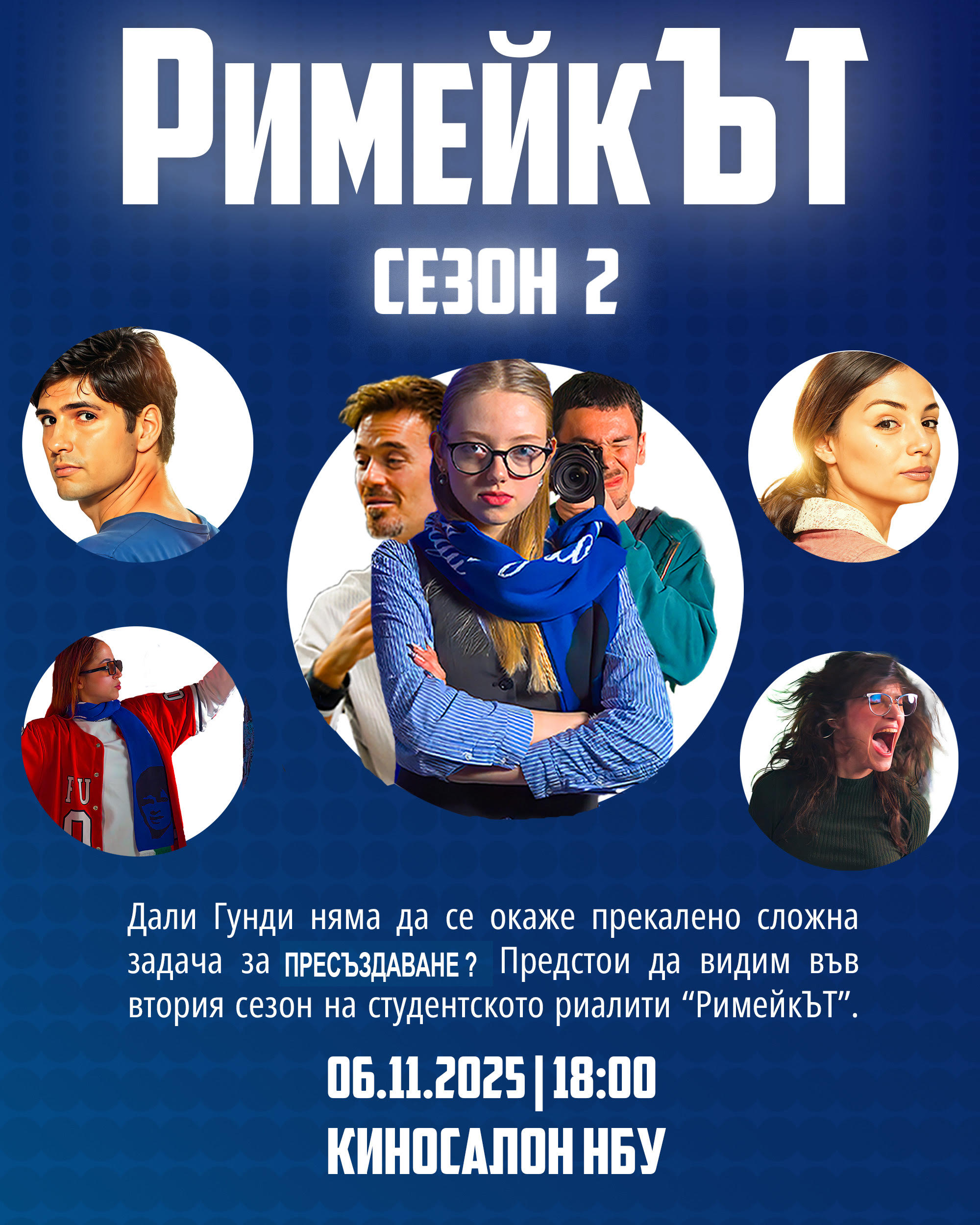 Предаването показва целия работен процес и ни среща с преподавателите проф. Людмил Христов, Ники Илиев и режисьора на филма Димитър Димитров. Събитието ще покаже на екран практическата работа на второкурсници от програма “ Кино и телевизия” в създаване на телевизионен сериен продукт.