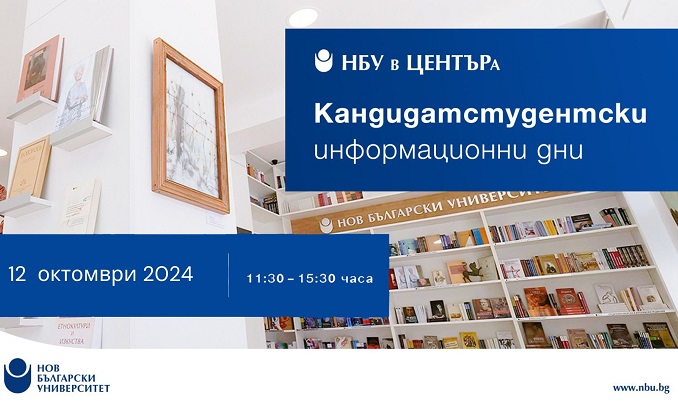 На 12. октомври в книжарница и галерия „НБУ в ЦЕНТЪРа“ ще се проведе „Информационен ден за кандидат-студенти“ от 11.30 ч. до 15.30 ч.