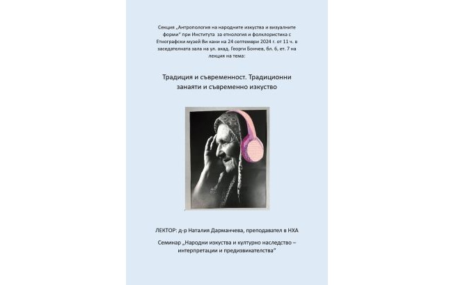 Начало В медиите В медиите 25 Септември 2024 Наталия Дарманчева ще изнесе днес лекция за традиционните занаяти в заседателната зала на БАН БТА Върни се към всички новини
