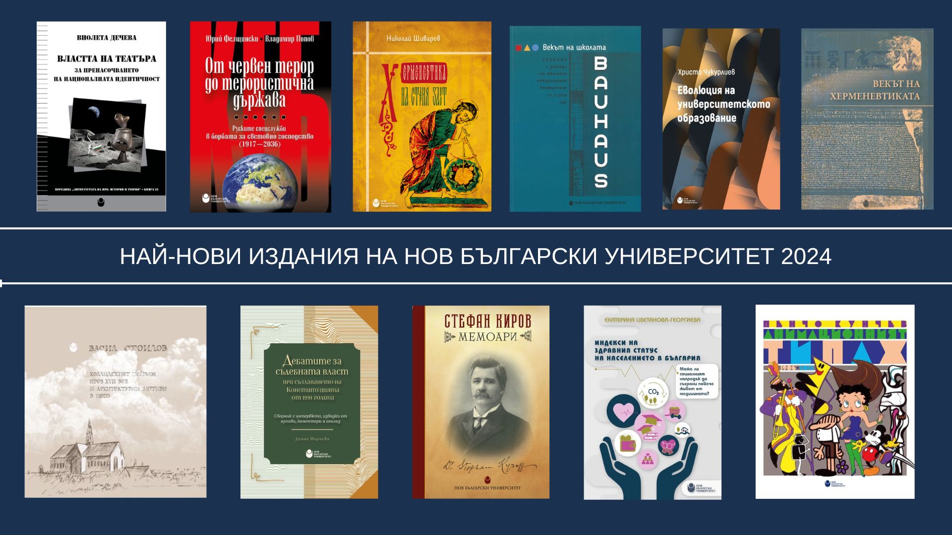 Център за книгата отправя покана за среща с изданията на Нов български университет на Софийския международен панаир от 10 до 15 декември 2024 г. в Националния дворец на културата. Академичните изданията са разположени в щанд №341 на трети етаж, запад и част от тях могат да бъдат закупени с 20 % отстъпка