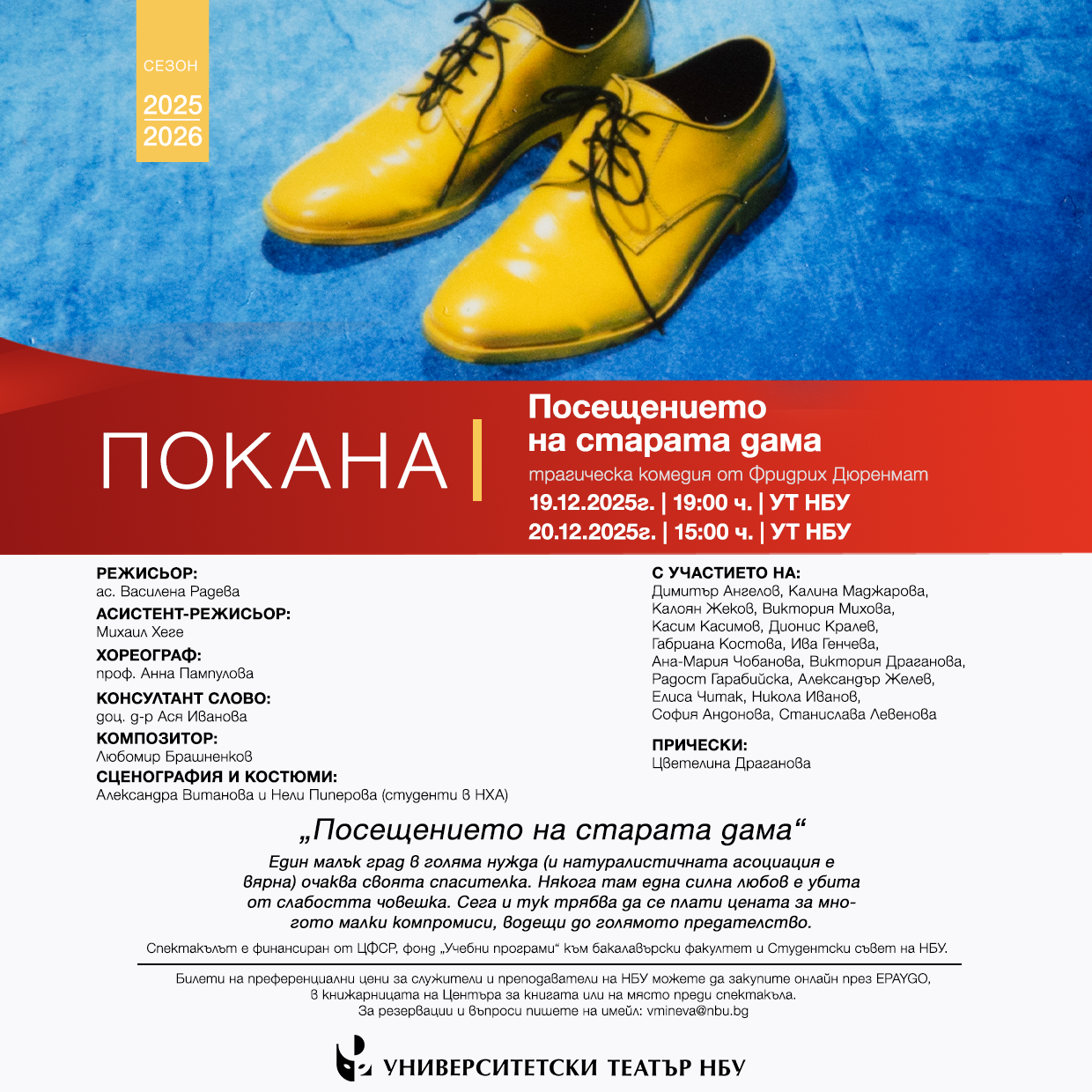 Премиера на „Посещението на старата дама“ от Фридрих Дюренмат в НБУ