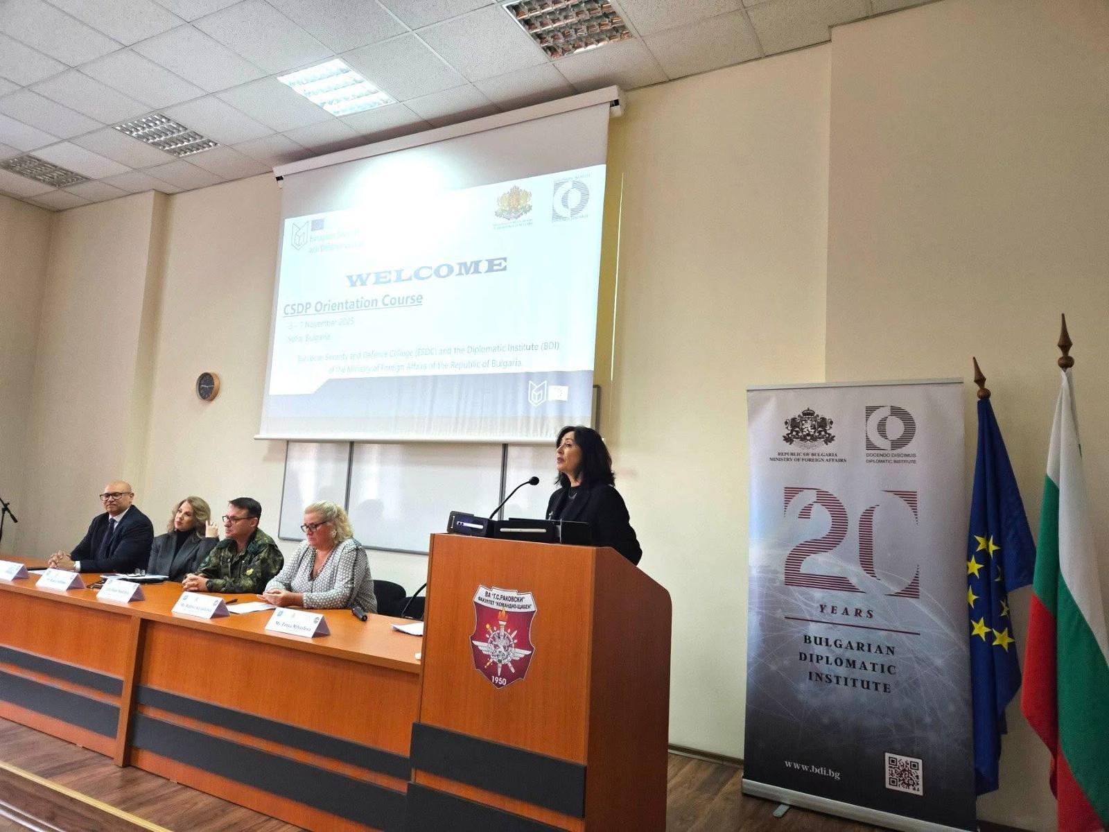 В периода 7–11 ноември 2025 г., в гр. София се проведе ориентационен курс „Обща политика за сигурност и отбрана на Европейския съюз“, на тема „Cooperation in the Black Sea region within the current European security architecture/Сътрудничество в Черноморския регион в рамките на настоящата европейска архитектура на сигурност“, организиран от Дипломатическия институт към Министерството на външните работи под егидата на Европейския колеж за сигурност и отбрана (ЕКСО), със съдействието на Военна академия „Г. С. Раковски“. В курса взеха участие 36 обучаеми от България и други европейски държави, сред които Белгия, Гърция, Испания, Италия, Кипър, Косово, Нидерландия, Полша, Португалия, Румъния, Словакия, Турция, Франция и Швеция. Представител от НБУ в курса беше щатния преподавател ас. д-р Петър Арабаджийски, който беше номиниран за участие в него от департамент „Национална и международна сигурност“ на НБУ.