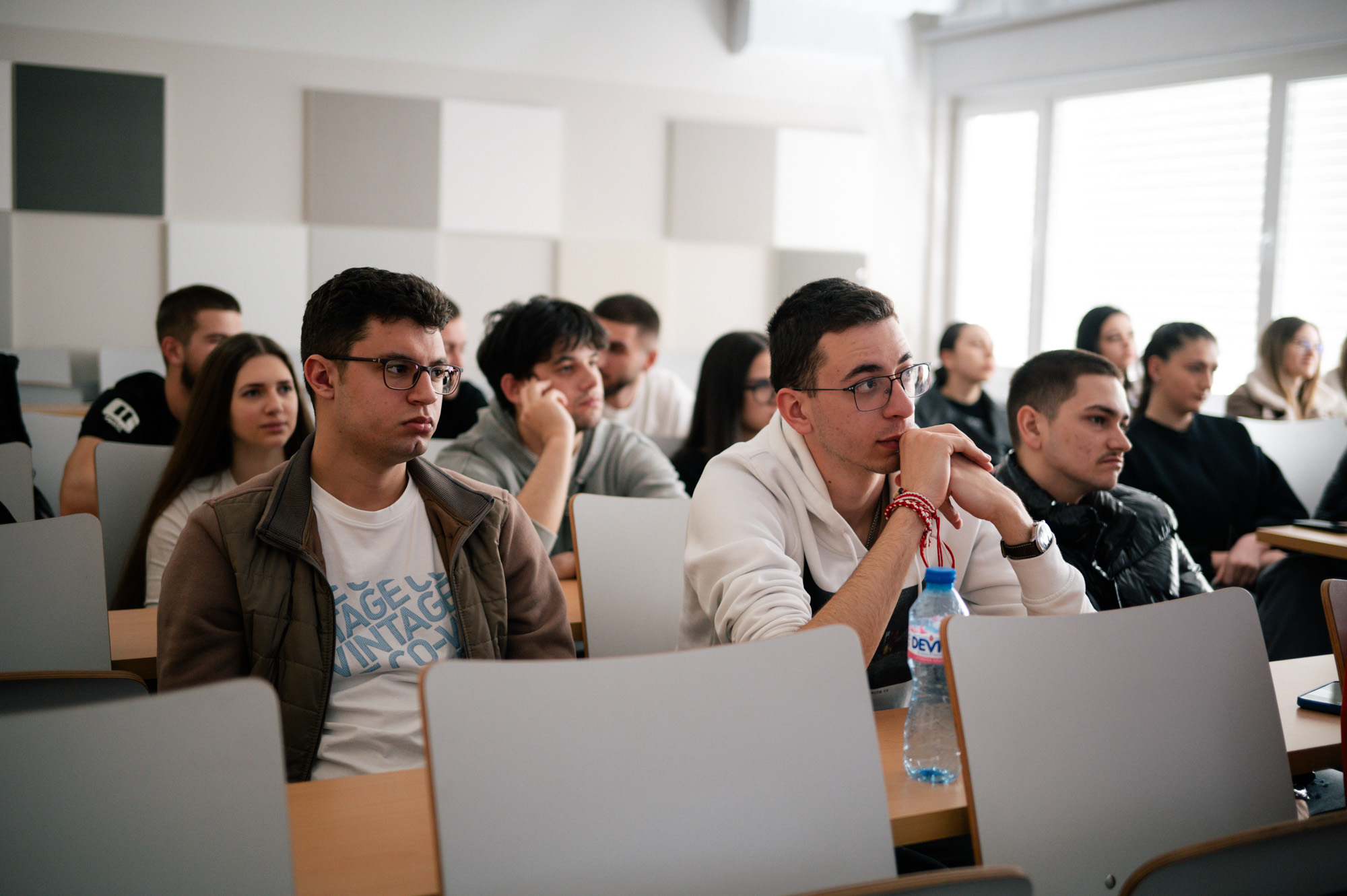 Лекцията спонтанно прерасна в свободна дискусия, по време на която студенти от първи курс, специалности Финанси и Счетоводство и контролинг, задаваха въпроси и споделяха впечатления за най-съществените социални проблеми на нашето време и за необходимостта от по-съвременни и адекватни социални политики. Откроена беше необходимостта от промотиране на социалната и икономическа полза на организации като Фабрика за идеи.