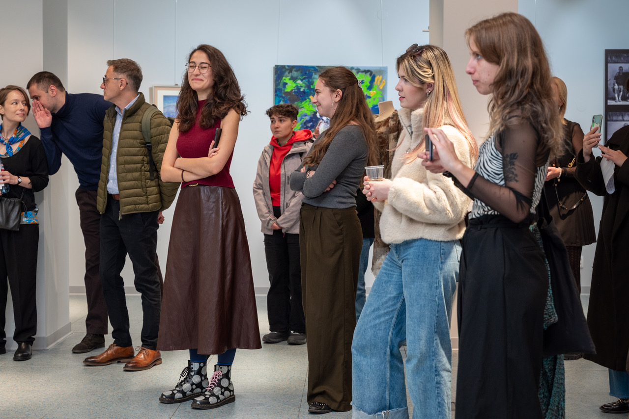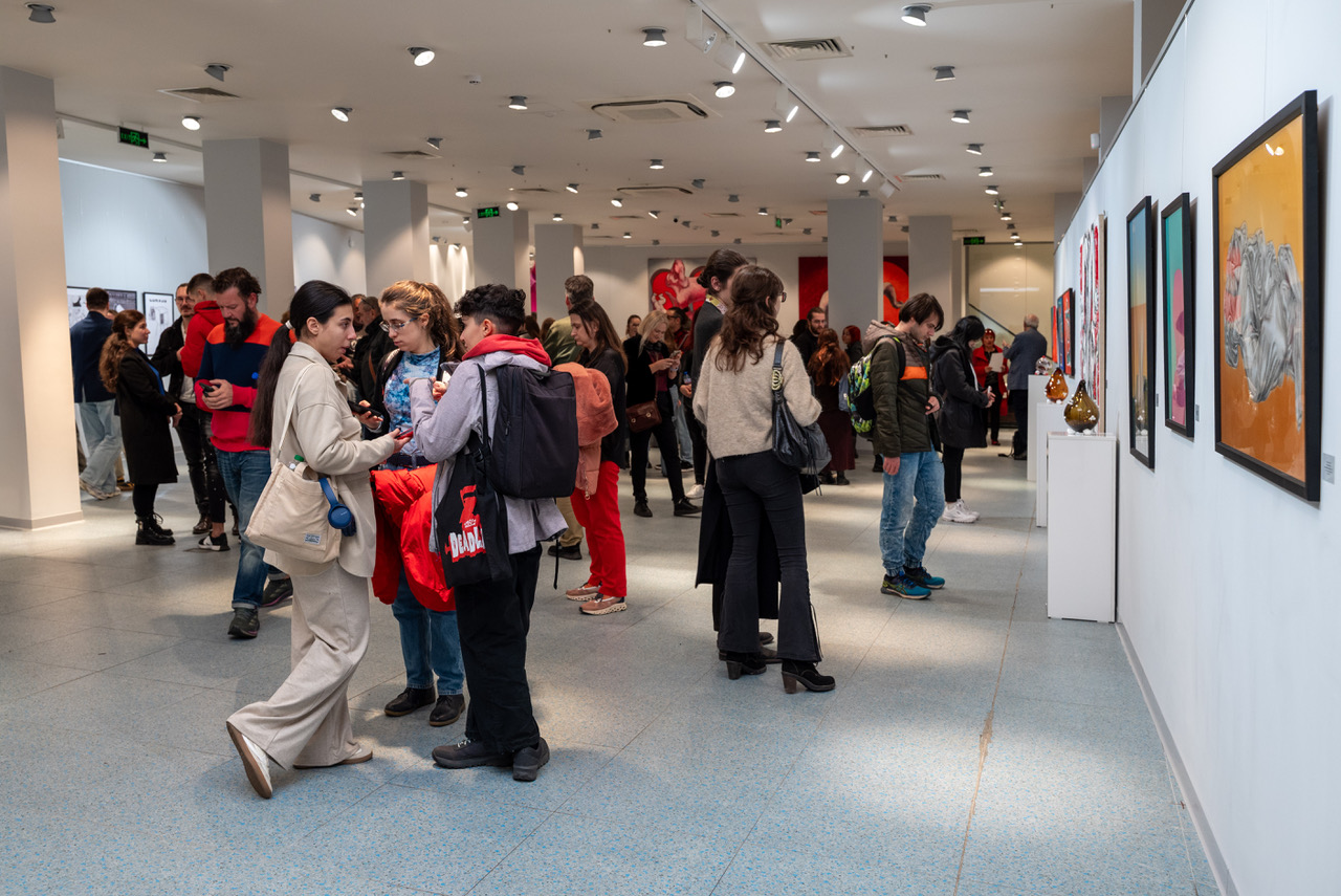 Откриването премина при много голям интерес. То беше посетено от десетки гости – както преподаватели от НБУ, така и специализирана, и широка публика. Особено радващо беше, че събитието привлече многобройни студенти от програмите по изкуства, дизайн и изкуствознание на НБУ, както и студенти от други университети. Ръководителите на кураторския и организационен екип на изложбата проф. Боян Манчев и ас. д-р Ева-Мария Иванова представиха изложбата пред гостите, като отбелязаха нейния уникален до момента характер.