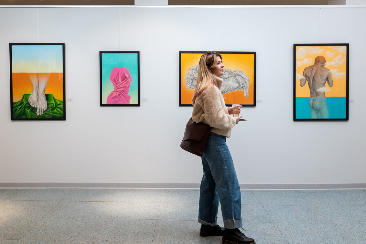 На 12 ноември в галерия nOva art space се откри изложбата „Ентропия, енергия, екстаз“ с участието на 30 преподаватели от Департамент „Изкуства и дизайн“. Първата по рода си изложба на най-многобройния департамент на НБУ беше осъществена от кураторски и организационен екип, включващ проф. д-р Боян Манчев д.н. и ас. д-р Ева-Мария Иванова, както и студентките Мария Христова, Яна Гончева (БП „Изкуствознание и артмениджмънт“) и Диана Венкова (БП „Графичен дизайн“).