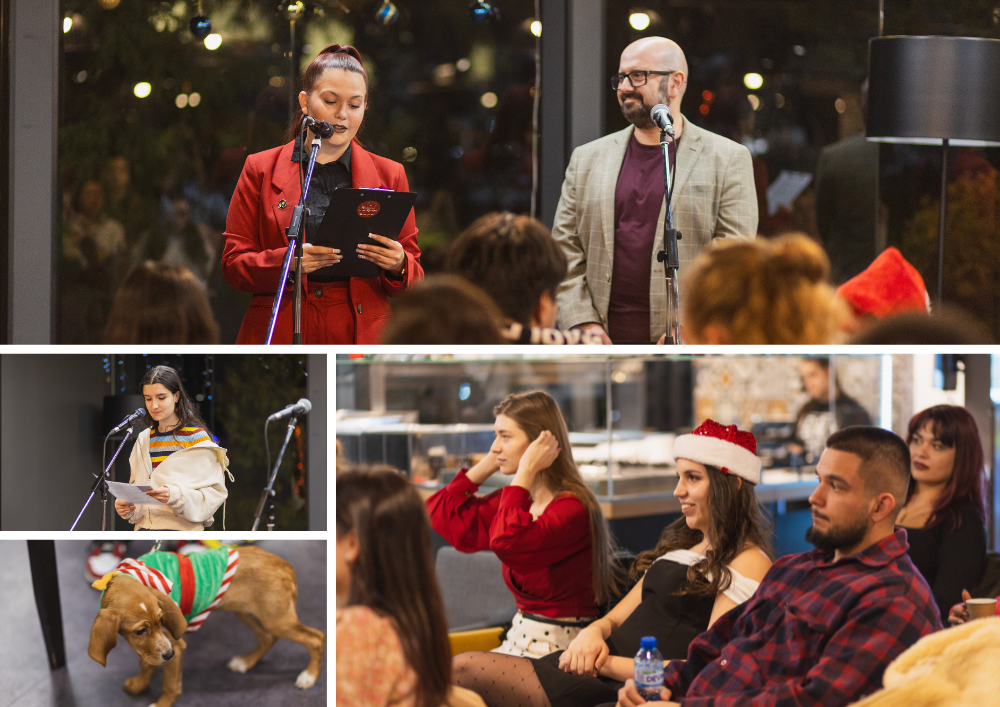 Сред най-очакваните събития отново бяха „Признания по Коледа“ – традиционната инициатива на Студентски съвет, която за трета поредна година събра студенти, преподаватели и служители около краткия коледен разказ, личните истории и човешката близост. В уютната атмосфера на ресторант „Гозба“ думите, музиката и емоциите създадоха усещане за истинска празнична общност.