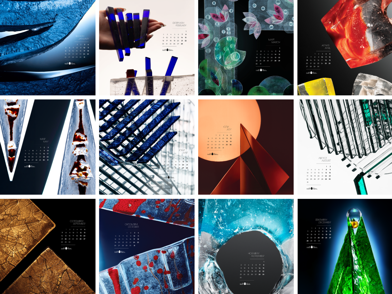 Всяка страница от календара разкрива вълшебния свят на стъклото и магията на светлината, която то разпръсква, превръщайки го в истинско визуално преживяване.