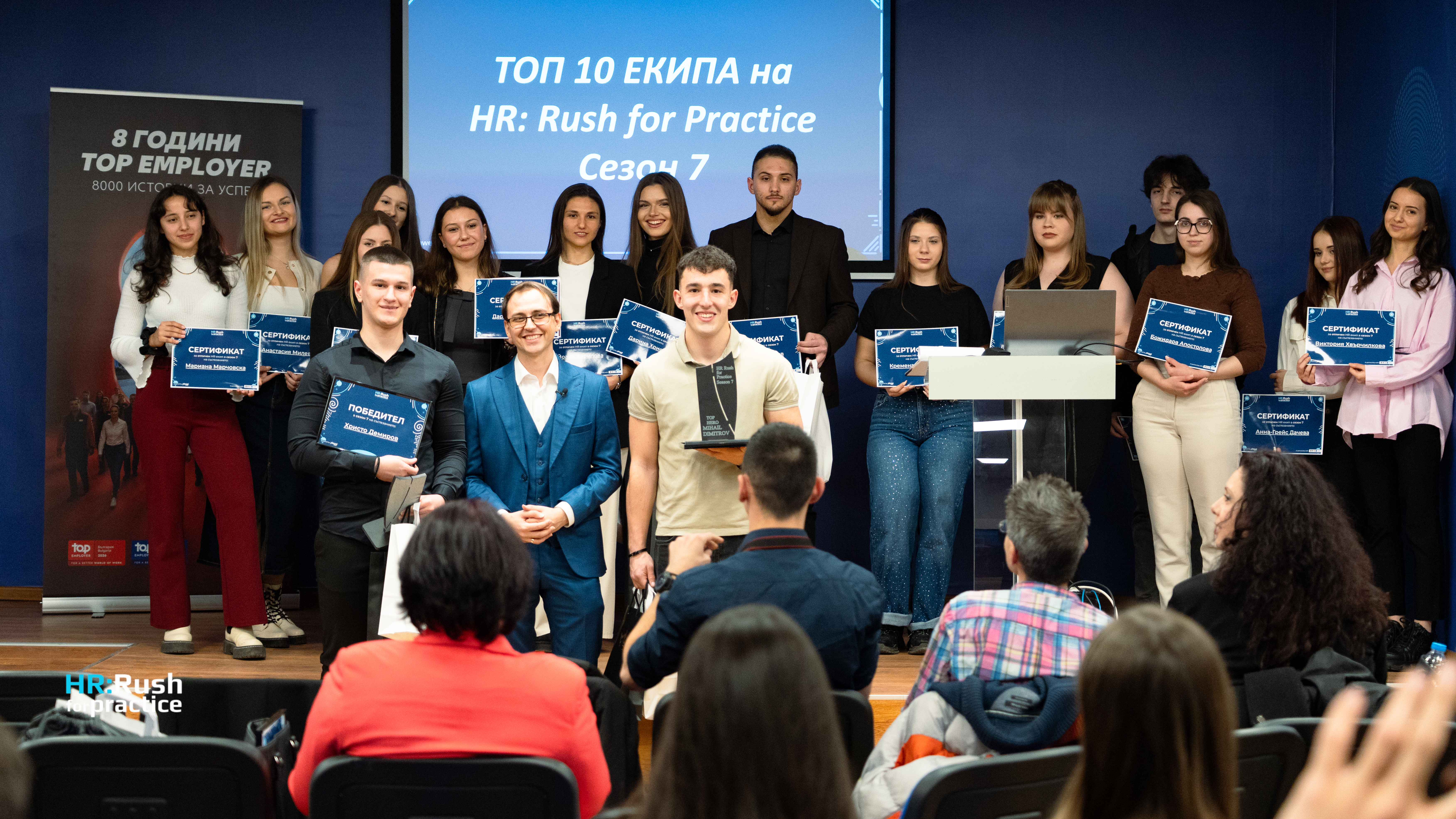 Закриващото събитие на 7-ми сезон на инициативата HR: Rush for Practice се превърна в силен и емоционален финал, отбелязващ още един значим успех за Нов български университет. Проектът за пореден път доказа, че когато образованието и бизнесът работят заедно, резултатите са реални, измерими и вдъхновяващи.