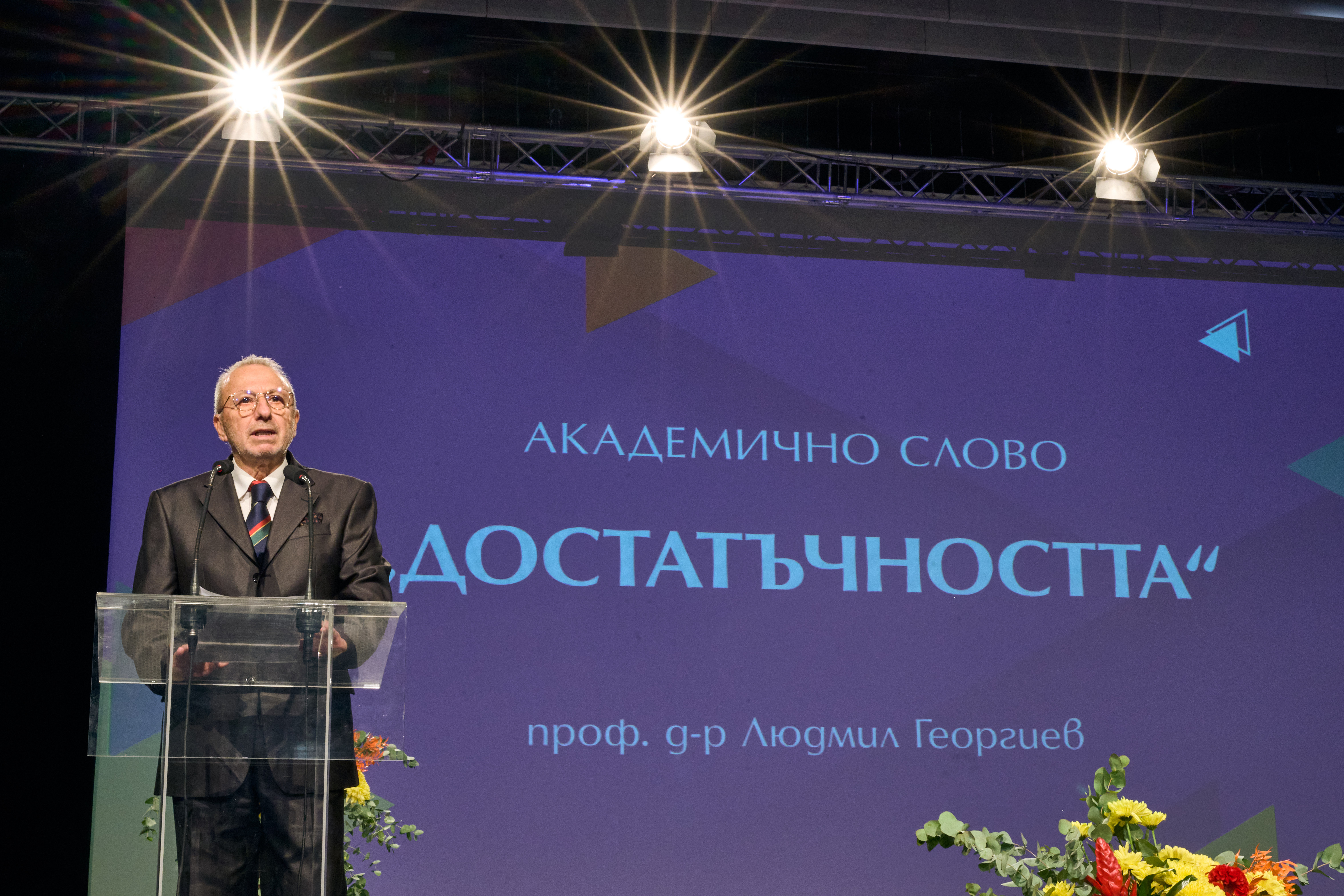 В своето обръщение към абсолвентите и гостите, проф. Георгиев разгледа дълбоката философска и житейска концепция за „Достатъчността“. Той призова завършващите да преосмислят културата на безкрайното потребление и да открият истинското богатство не в излишъка, а в мярката, вътрешното удовлетворение и качеството на човешките връзки.