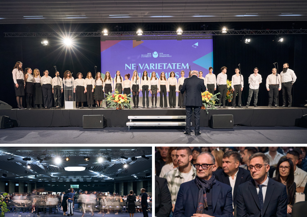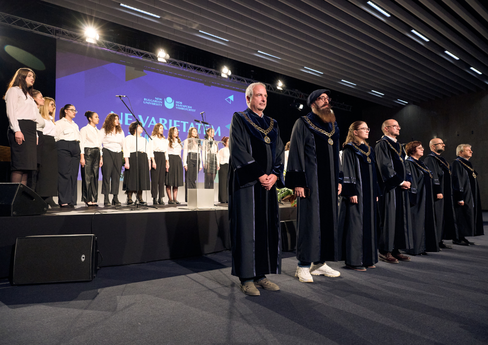 Церемонията беше открита с тържествено изпълнение на студентския химн "Gaudeamus Igitur" от талантливите певци на Университетски смесен хор на НБУ с ръководител проф. Георги Петков.