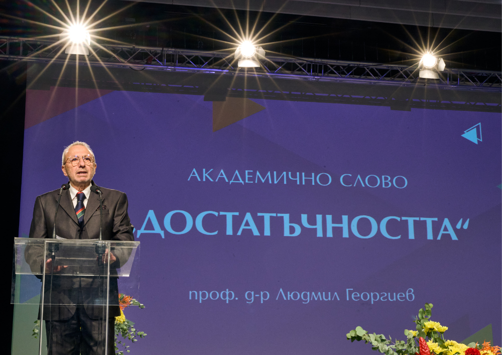 Темата на словото му беше „Достатъчността“, а в речта си проф. Георгиев се фокусира върху концепцията за достатъчността като вътрешен житейски избор и етичен принцип.
