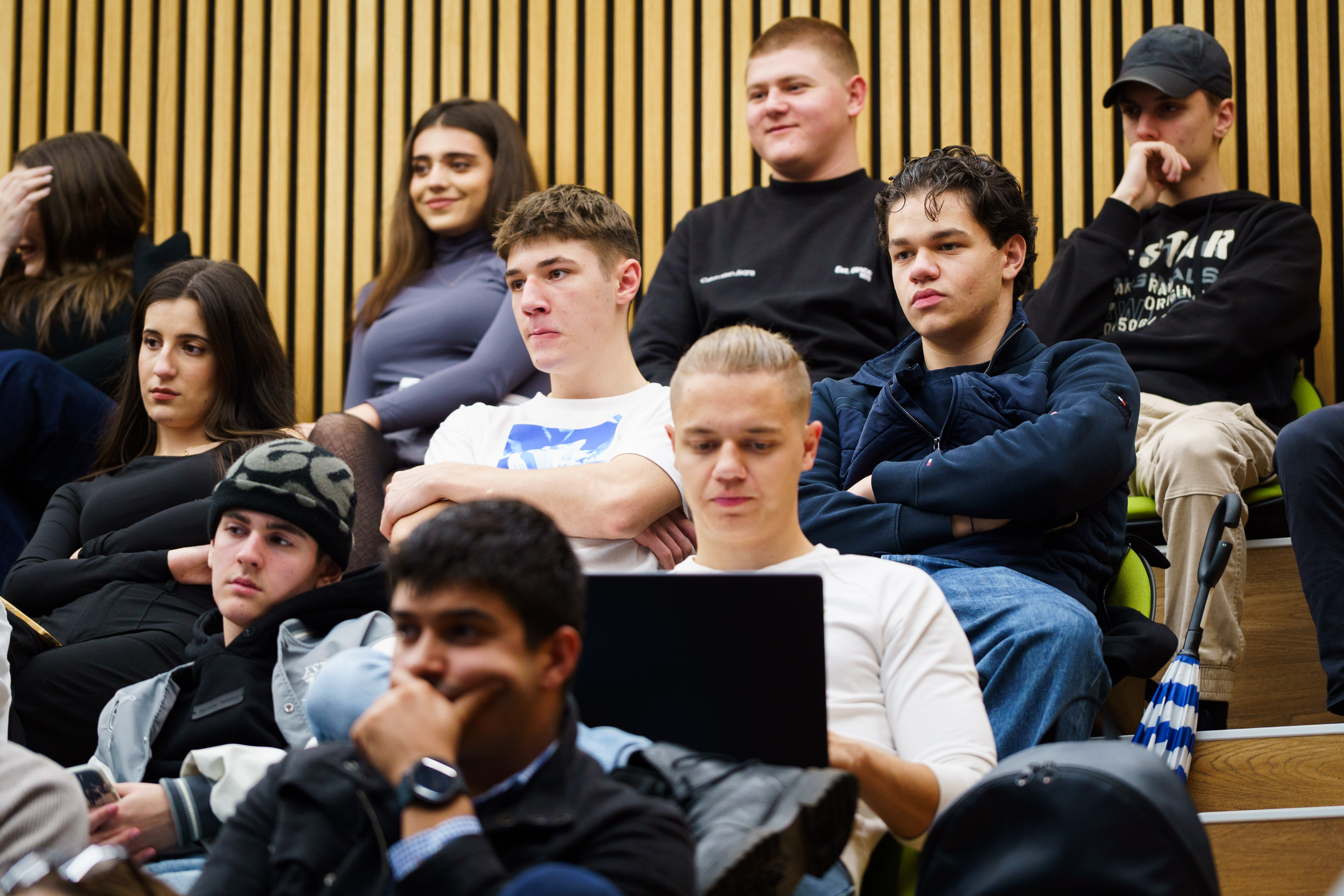 В събитието участваха над 100 студенти от бакалавърски, MBA и докторски програми, изучаващи дисциплини като конкурентоспособност, иновации, предприемачество, проектен мениджмънт и международни икономически отношения. Аудиторията включваше студенти от първи до седми семестър, български и международни Еразъм студенти, чиито курсове се водят на български, английски и френски език. Сред гостите присъстваха и преподаватели от различни академични направления – икономика, администрация и мениджмънт, езици и политически науки, допринасяйки за атмосфера на колегиалност и споделен академичен интерес.