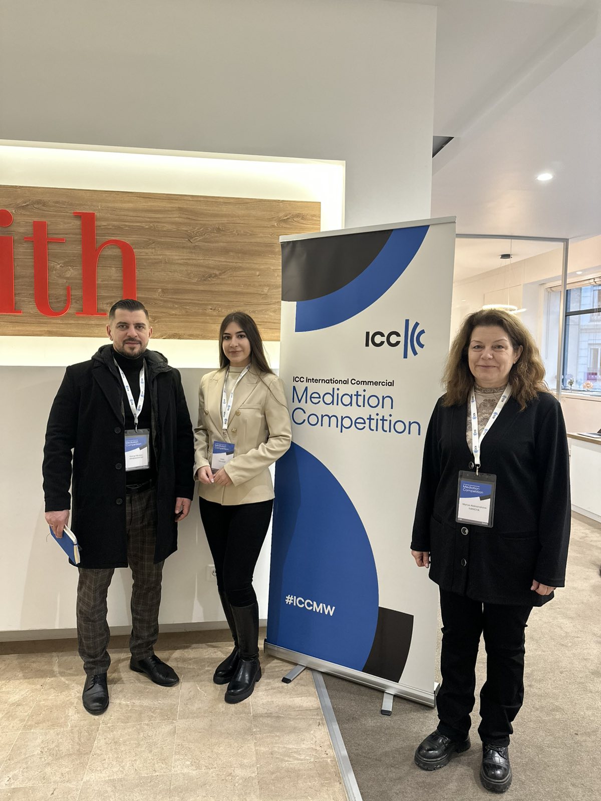 Възпитаниците на магистърска програма Мениджмънт за организационно съвършенство, Георги Николаев Арабаджийски и Далиа Мохамед Юсеф, с преподавател и треньор по медиация доц. д-р Мария Александрова Иванова, се включиха в най-престижното международно образователно събитие по търговска медиация. Събитието, организирано от Международна търговска камара (ICC) в Париж, се проведе в периода между 2 и 7 февруари 2026 г.