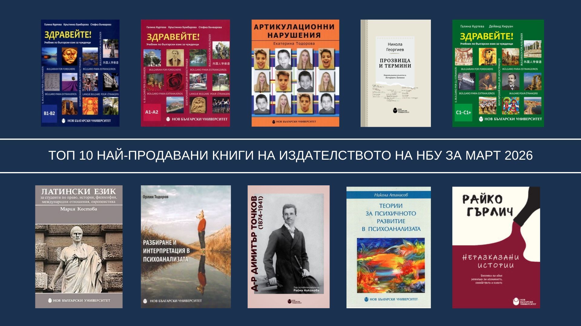 Център за книгата представя най-купуваните книги на Издателството на Нов български университет през март 2026 г.